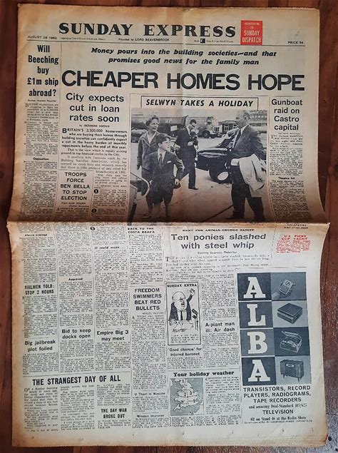 Sunday Express Aug 26 1962 Original Rare Vintage Newspaper Birthday Selwyn Lloyd